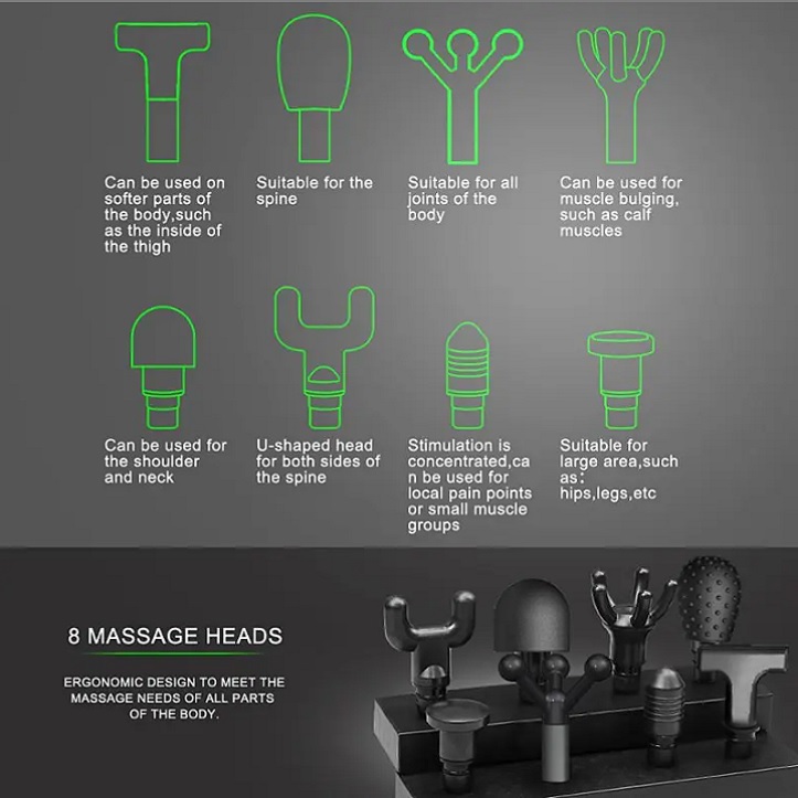 • دستگاه ماساژور گان (یا ماساژور تفنگی) یک ابزار محبوب برای تسکین دردهای عضلانی و کاهش تنش‌های فیزیکی است.
